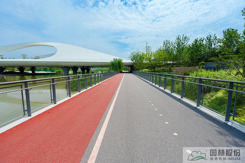 城市綠道通過鋪裝材質(zhì)區(qū)分出騎行道和跑步道。騎行區(qū)域采取瀝青材質(zhì),提高耐久度和使用壽命,有效控制成本造價。跑步道區(qū)域采用EPDM塑膠顆粒面層,提高使用舒適度,采取靚麗的色彩與騎行區(qū)域進(jìn)行區(qū)分。結(jié)合人才驛站設(shè)置瞭望臺,游人在此可小憩補(bǔ)充體力,也可登高俯瞰河道景觀。造型獨(dú)特的驛站和瞭望臺也是河道上的一處風(fēng)景。